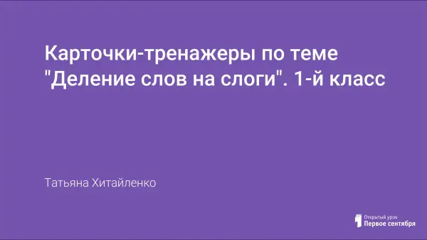 Представлены карточки-тренажеры на закрепление темы "Деление слов на слоги".