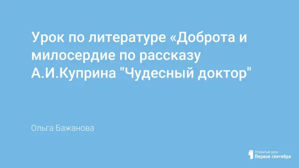 Цель урока: понять, почему рассказ А.И. Куприна называется "Чудесный доктор". В чём чудо?