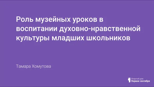 Воспитание духовно-нравственной культуры младших школьников является залогом развития государства. Духовно-нравственная активность не развивается спонтанно, она требует системы специальных педагогических воздействий. Россия – поистине уникальная страна, которая наряду с высокоразвитой современной культурой бережно хранит семейные традиции своей нации. Семья — это очень важно для нашего народа, для сохранения традиций, которые в основном передаются именно в семьях. Музейные уроки призваны формировать положительное эмоционально-ценностное отношение к традиционной народной культуре и этнокультурной среде в целом, ценностного отношения к семье, родителям, Родине у детей и подростков.