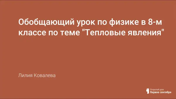 Урок обобщения и систематизации знаний учащихся, на котором повторяются вопросы: внутренняя энергия, способы ее изменения; тепловые процессы; основные формулы для расчета количества теплоты; тепловые двигатели, КПД тепловых двигателей. Презентация повышает эффективность проверки усвоения учебного материала, улучшает наглядность изучаемого материала, развивает познавательный интерес к предмету.