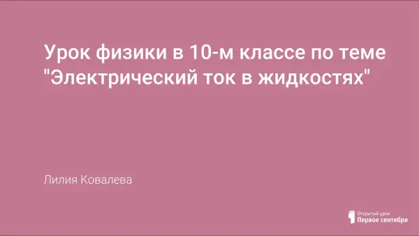 Цель урока – формирование понятий «электролиты, электрическая диссоциация, степень диссоциации»; рассмотрение явления электролиза, вывод закона Фарадея; применение электролиза в технике.