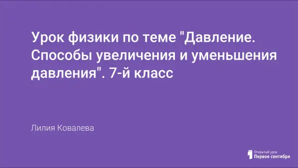 Урок формирует общие представления о давлении, силе давления, единице измерения давления и способах изменения давления. Презентации повышает наглядность изучаемого материала, развивает познавательный интерес к предмету.
