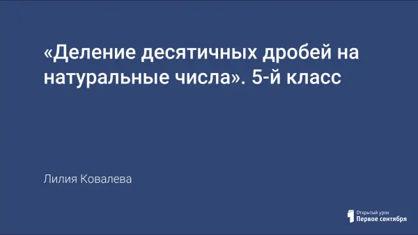 Цель урока: формирование навыков деления десятичных дробей на натуральные числа, умения применять правило деления десятичной дроби на натуральное число.