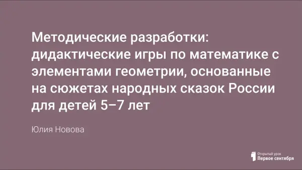 Представлены методические разработки дидактических игр по математике с элементами геометрии, основанные на сюжетах народных сказок России для детей 5–7 лет.