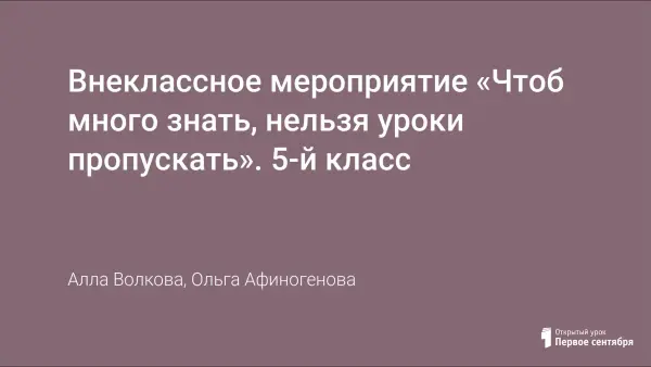 Внеклассное мероприятие «Чтоб много знать, нельзя уроки пропускать». 5-й класс