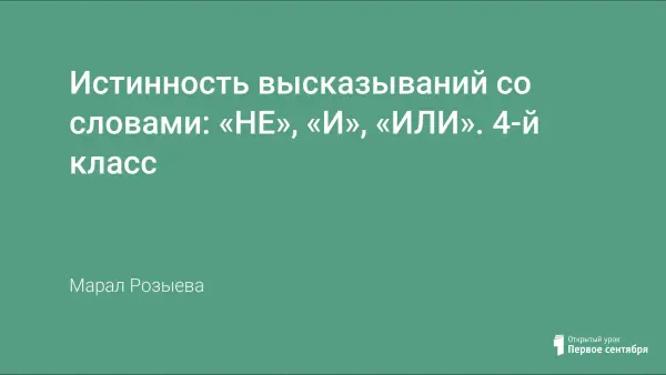 Цель урока: обучение определению истинности высказываний, содержащих слова «не», «и», «или».
