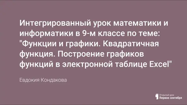 Цели урока: ввести в речевую практику понятие квадратичная функция; отработать алгоритм построения графика квадратичной функции; вместе с учащимися учиться выбирать рациональные способы построения графиков в зависимости от условий, сформировать навык самостоятельной работы с электронными образовательными ресурсами в программе Excel.