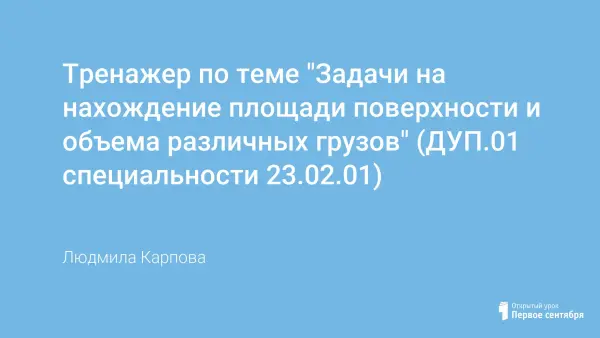 Представлен тренажер по теме «Задачи на нахождение площади различных поверхностей, объемов».