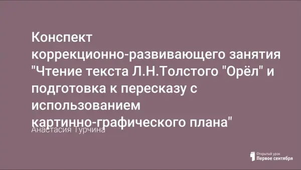 Цели и задачи занятия: познакомить детей с произведением Л.Н.Толстого «Орёл», обратить внимание детей на содержание и нравственные вопросы, прослеживающиеся на протяжении рассказа; учить детей оценивать поступки и мотивы этих поступков героев и соотносить их со своим жизненным опытом; отработать технику чтения; закрепить умение делить текст на смысловые части и составлять картинно-графический план, формировать самостоятельное связное высказывание; подготовить детей к пересказу текста по картинно-графическому плану.