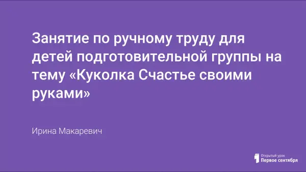 Цель материала: приобщение детей к народной культуре в совместном творчестве с родителями и педагогами группы. Урок знакомит детей и их родителей с тряпичной, народной куклой.
