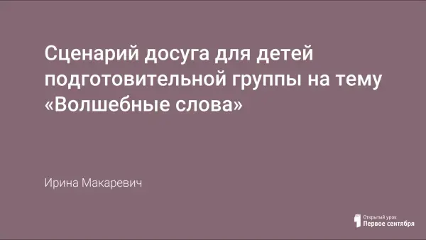 Данный сценарий поможет воспитателям дошкольных учреждений, через различные игры и веселое времяпровождение показать детям, что без вежливых, «волшебных» слов и поступков невозможно обойтись как детям, так и взрослым людям в любом сообществе, в различных ситуациях.