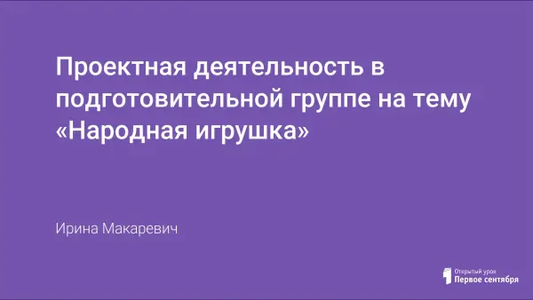 Цель: приобщение детей к народной культуре, знакомство с народной игрушкой. У детей и родителей развивается интерес к истории народной игрушки.