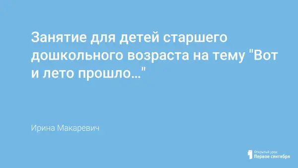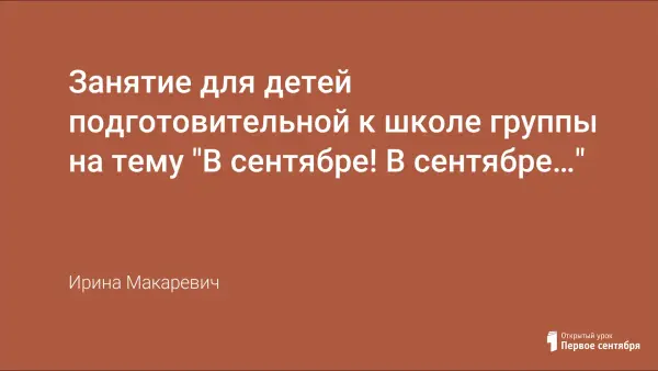 Конспект занятия в подготовительной к школе группе по развитию речи будет полезен как воспитателям обычных дошкольных учреждений, так коррекционных. Цели: обобщение и систематизация представлений детей об осени, об осенних явлениях и изменениях происходящих в сентябре месяце; совершенствование грамматического строя речи, развитие связной речи, выразительного чтения стихов; воспитание бережного отношения к природе.
