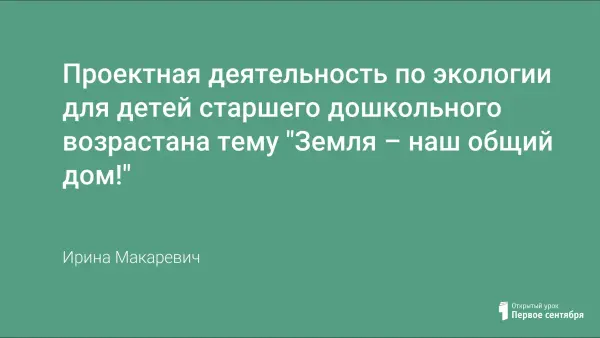 Предлагаю вашему вниманию перспективный план реализации проектной деятельности по экологии «Земля – наш общий дом!». Проект направлен на формирование экологической культуры как детей, так и родителей, на вовлечение их в разнообразные виды деятельности в природе.