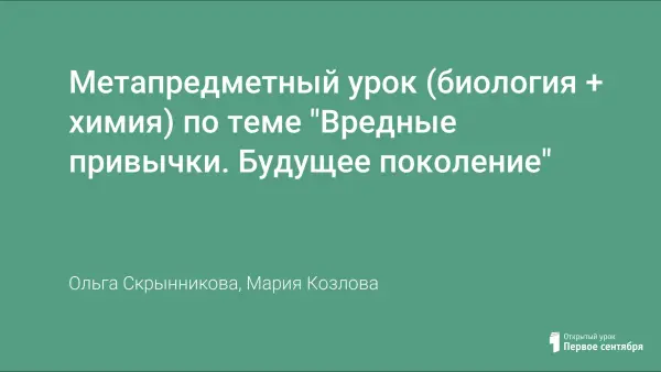 Метапредметный урок (биология + химия) по теме "Вредные привычки. Будущее поколение"