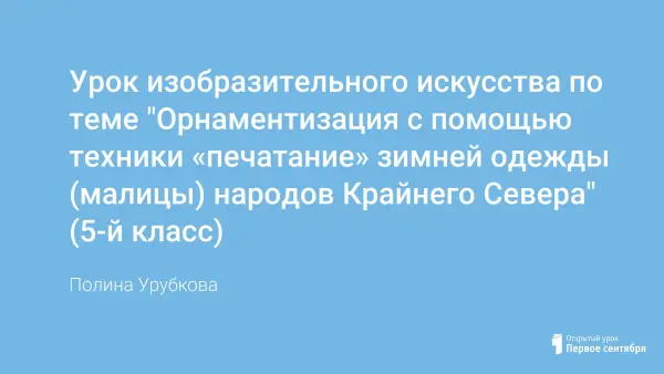 Урок с использованием национально-регионального компонента Ямало-Ненецкого автономного округа. На уроке дети рисуют традиционную меховую одежду северян - малицу – техникой лессировки и орнаментируют "печатью" из картофеля.