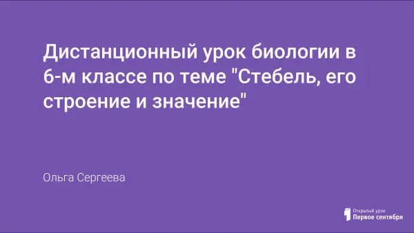 Представлен дистанционный урок биологии в 6-м классе по теме "Стебель, его строение и значение".