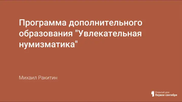 Программа дополнительного образования "Увлекательная нумизматика" предназначена для учащихся 7-9-х классов. Основное направление - исследовательская деятельность в области нумизматики. Отличительной особенностью программы является изучение монет по международным стандартам. Большое внимание уделено изучению монет Тверского княжества.
