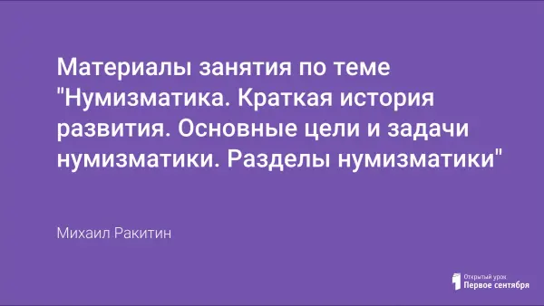 В статье представлены методические материалы к занятию по теме «Нумизматика. Краткая история развития. Основные цели и задачи нумизматики. Разделы нумизматики» при использовании программы «Увлекательная нумизматика». Материалы могут оказать помощь учителю при изучении нумизматики на уроках истории, краеведения, мировой художественной культуры, экономики.