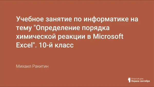 Урок является составной частью элективного курса "Компьютерные технологии в химии и биологии" и предназначен для учащихся 10-го класса химико-биологического профиля. Порядок реакции - важная характеристика при рассмотрении кинетики химических реакций. Учащимся предлагается определить порядок реакции, произвести расчет константы скорости реакции, а также уточнить порядок реакции с помощью метода Вант-Гоффа по опытным данным.