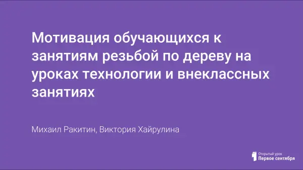 В статье рассматриваются основные способы мотивации учащихся к творческой деятельности в области резьбы по дереву. Некоторые приведенные способы мотивации могут быть использованы при обучении учеников другим видам декоративно-прикладного творчества.