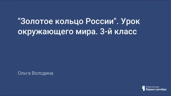 Урок окружающего мира по теме «Золотое кольцо России» знакомит обучающихся 3-го класса с древними городами нашей Родины, их историей и достопримечательностями. Целесообразно запланировать на данную тему два или три урока, так как материал учебника объёмный и интересный, и усвоение материала зависит от уровня подготовленности класса.