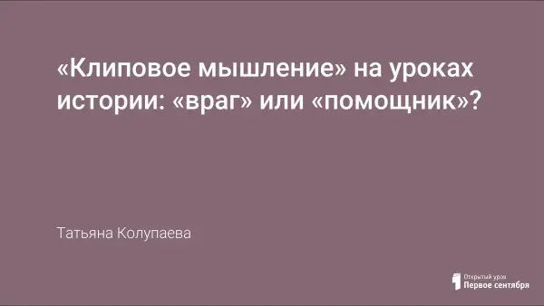 Клиповое мышление не требует подключения воображения, рефлексии, осмысления, все время происходит «перезагрузка», «обновление» информации, когда всё первоначально увиденное без временного разрыва утрачивает свое значение, устаревает, т.е. оно кратковременное. Для обучающихся старших классов это приводит к тому, что они вынуждены тратить время при подготовке к экзаменам на изучение тем, которые уже были пройдены, а не углублять и расширять знания по теме. Наглядный пример: 9- и 11-е классы. В 9-м классе проходим полностью историю XX века, через год тема забыта под давлением груза знаний за курс 10-го класса. В 11-м классе изучаем те же темы, как будто в первый раз.