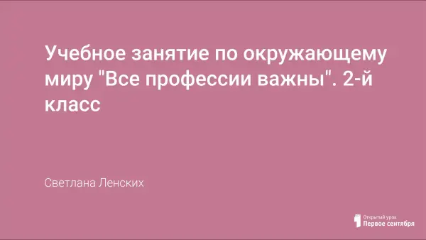 Цель урока: формирование представления о многообразии профессий и их взаимосвязи.