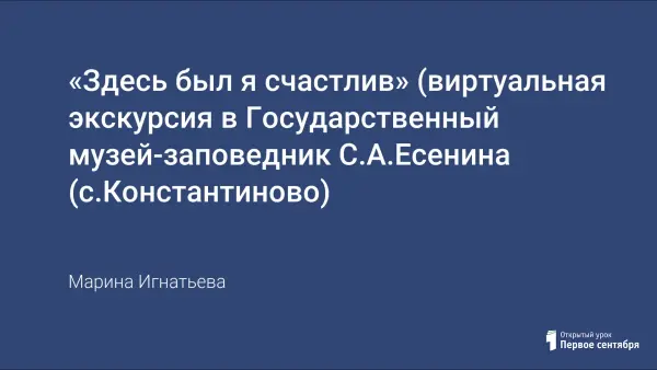 Цель экскурсии: проникнуть в атмосферу жизни С.А.Есенина, подготовить учащихся к восприятию его стихотворений.