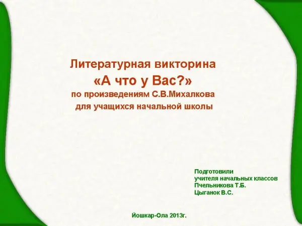 Литературная викторина для учащихся начальной школы по произведениям С.В. Михалкова