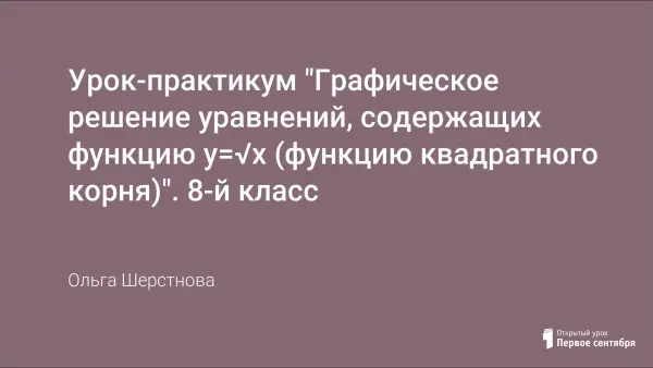 Цель урока: применить графический алгоритм решения уравнений к функции y=√х.
