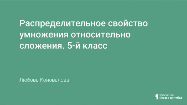 Цель урока: применять распределительное свойство умножения для рациональных способов вычисления. Работая много лет, я замечаю, насколько сложно дается данная тема пятиклассникам. Порой слышу от ребенка, что он сосчитает и без распределительного свойства. Я задаю пример и один ученик решает используя свойство, а другой по действиям.