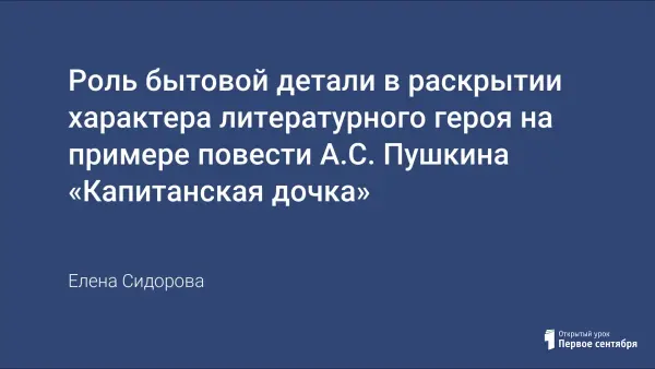 На примере повести А.С. Пушкина «Капитанская дочка» показано, как костюм героя и детали быта способны не только рассказать об эпохе, но и помочь глубже понять внутренний мир героя, идейный замысел автора художественного произведения.