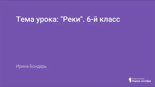 Цель урока: формирование представлений о водах суши на основе знаний о реках. В ходе урока решаются задачи: формирование представления о реке и ее частях; отработка практических навыков работы с текстом и картами; воспитание географической культуры и эстетического восприятия географических объектов.