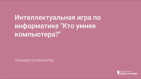 Интеллектуальная игра по информатике «Кто умнее компьютера?» для учащихся 9–11-х классов развивает творческие способности учащихся, прививает интерес к предмету, анализирует результаты обучения информатике, отслеживает практическую направленность знаний по информатике.
