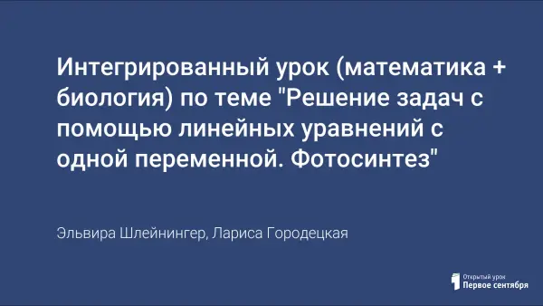 Интегрированный урок в 6-м классе по математике и биологии объединяет на одном уроке две темы «Решение задач с помощью линейных уравнений» и «Фотосинтез», углубляя и дополняя знания учащихся. На уроке применены групповая, индивидуальная формы работы. На одном уроке учащиеся изучают новый материал, закрепляют знания и проверяют их.