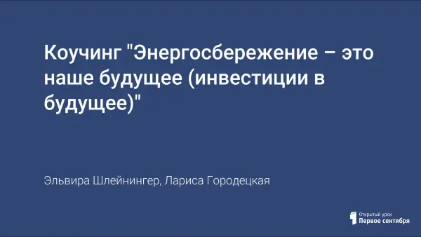 Коучинг по теме «Энергосбережение – это наше будущее» (инвестиции в будущее) позволит раскрыться учащимся по вопросам энергосбережения в интересной игровой форме и найти ответы на поставленные вопросы.