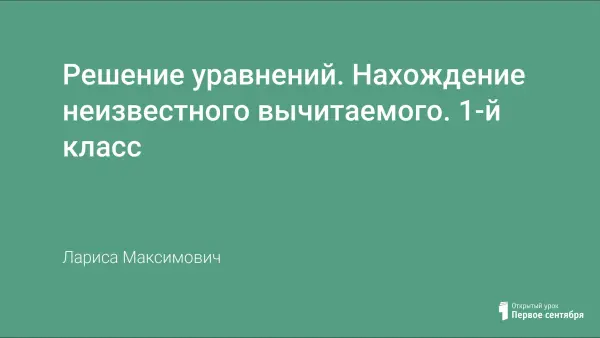 На уроке первоклассники знакомятся с правилом нахождения неизвестного вычитаемого, продолжают работу над формированием умения решать уравнения с неизвестным слагаемым. Сравнивают данные типы уравнений через взаимосвязь действий сложения и вычитания.