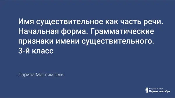 На уроке русского языка третьеклассники распознают в речи имена существительные, определяют начальную форму существительных, их грамматические признаки. Выполняя упражнения, знакомятся с грамматическим значением "предмет". Обращают внимание на то, что в грамматике понятие "предмет" гораздо шире, чем понятие "предмет" в повседневной жизни.