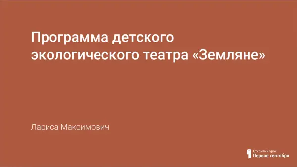 Программа экологического театра «Земляне» развивает эмоционально-личностную сферу детей. Цель программы: средствами театрального искусства гармонизировать отношения ребенка с окружающим миром.