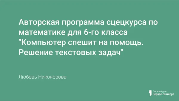 Спецкурс построен на основе применения в практике решения задач специализированного обучающего программного обеспечения – ИИСС "Математика на компьютерах". Учащиеся изучают методы и способы решения различных задач с применением компьютерных технологий, которые способствуют развитию логического и алгоритмического мышления, создают условия для развития познавательной активности, формирования и совершенствования ИКТ-компетентности шестиклассников.