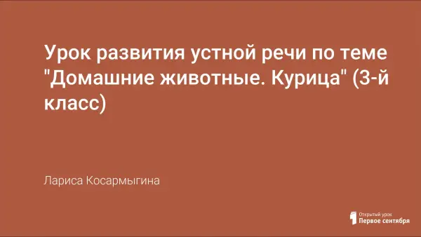 Цели урока: расширять представление учащихся о группах птиц на основе знакомства с курицей; упражнять учащихся в рассказывании небольшого текста; развитие внимания и мышления с учётом субъективного опыта учащихся; развитие связной речи; воспитывать любовь к животным.