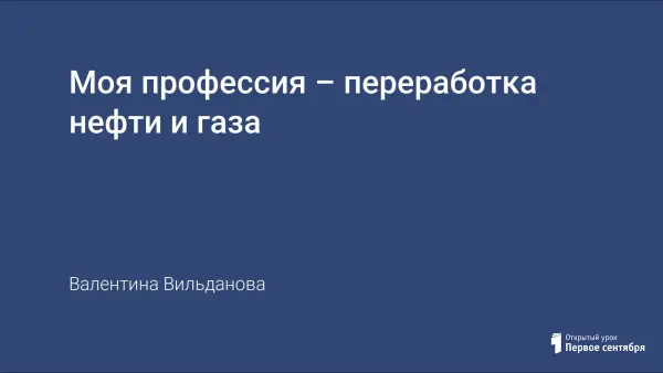 Представлена презентация по теме "Моя профессия – переработка нефти и газа".