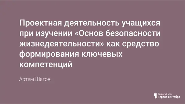 Проектная деятельность учащихся при изучении «Основ безопасности жизнедеятельности» как средство формирования ключевых компетенций