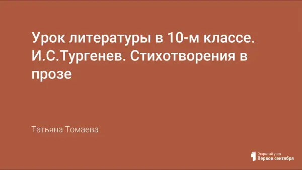 Цели урока: познакомить учащихся с новым жанром; выявить особенности тургеневского мировосприятия в последние годы жизни; проанализировать несколько стихотворений в прозе, определить их темы, их роль в нравственном воспитании.