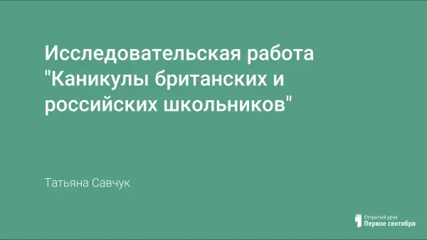 Каникулы школьникам помогают организовать их родители, а также педагоги летних лагерей. Школьники также сами принимают активное участие в планирование собственного досуга – они самостоятельно решают, когда выполнить школьное летнее задание, а когда выделить время для хобби, просмотра любимых телепередач или игры. Несмотря на культурные различия между нашими странами – Россией и Великобританией - основное назначение и цель каникул одно и то же – оздоровление и смена деятельности учащегося.