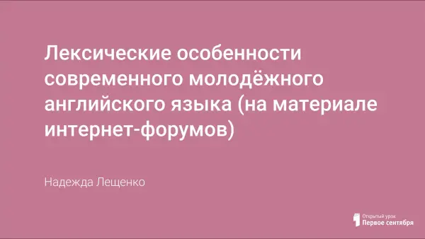 Особое место в разговорном английском занимает молодёжный сленг, который в настоящее время активно развивается и в ряде случаев переходит в стандарт. Изучив молодёжный сленг, можно сделать вывод, что причины употребления сленга молодёжью, это результат желания подростков отличаться от взрослых и быть ближе к «своим».