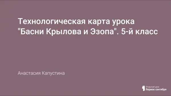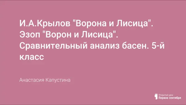 Цель урока: формировать навык распознавания басни как жанра литературы по характерным признакам, знакомство с основными фактами биографий авторов художественных произведений.