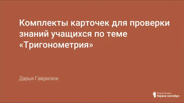 Представлен комплекты карточек, для проверки знаний учащихся по теме «Тригонометрия».