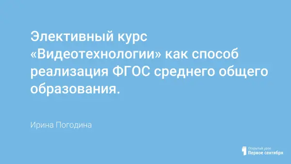 Элективный курс «Видео технологии» в средней школе не только вызывает большой интерес у старших школьников и повышает мотивацию к освоению информационных технологий, но и позволяет формировать личностные характеристики учащихся, перечисленные в федеральном государственном образовательном стандарте среднего общего образования.